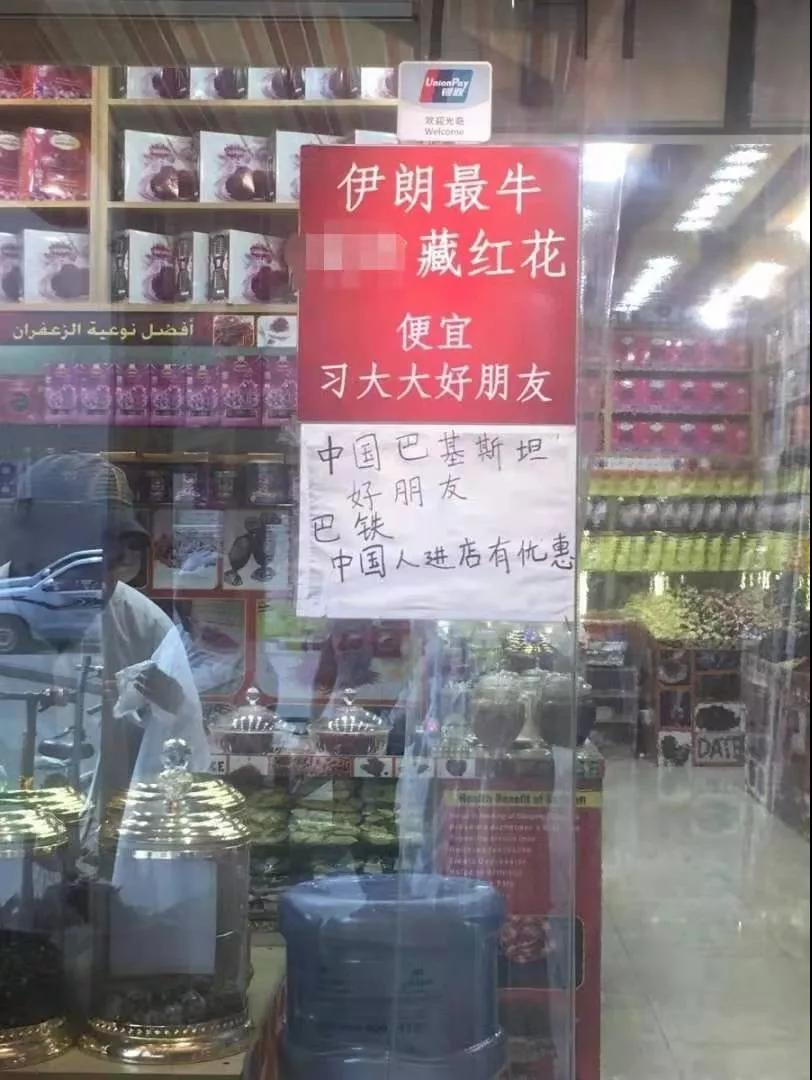 在迪拜本地的黄金市场和香料市场更是非常看重中国市场。有许许多多的巴基斯坦商人在这里卖藏红花等产品,最好笑的就是下图的标语了。