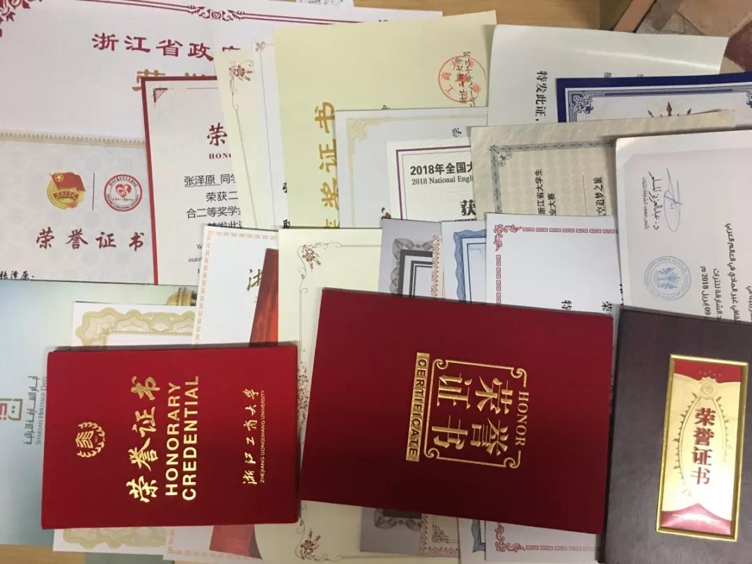 优秀学生综合一等奖学金,综合二等奖学金、浙江省政府奖学金。阿拉伯语专业四级成绩优秀,大三将前往阿联酋沙迦大学交换一年。曾荣获两届校“彩虹杯”职业规划大赛一等奖、英语阅读竞赛一等奖、社会实践先进个人、浙江工商大优秀团员等30余奖项。参与世界互联网大会,联合国环境日等10余项志愿活动,志愿时数超370小时,荣膺校二星志愿者。